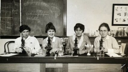 featured image: The names of the women seated before microscopes in this undated photo were not recorded. (Bettmann / Getty) appeared in The Atlantic